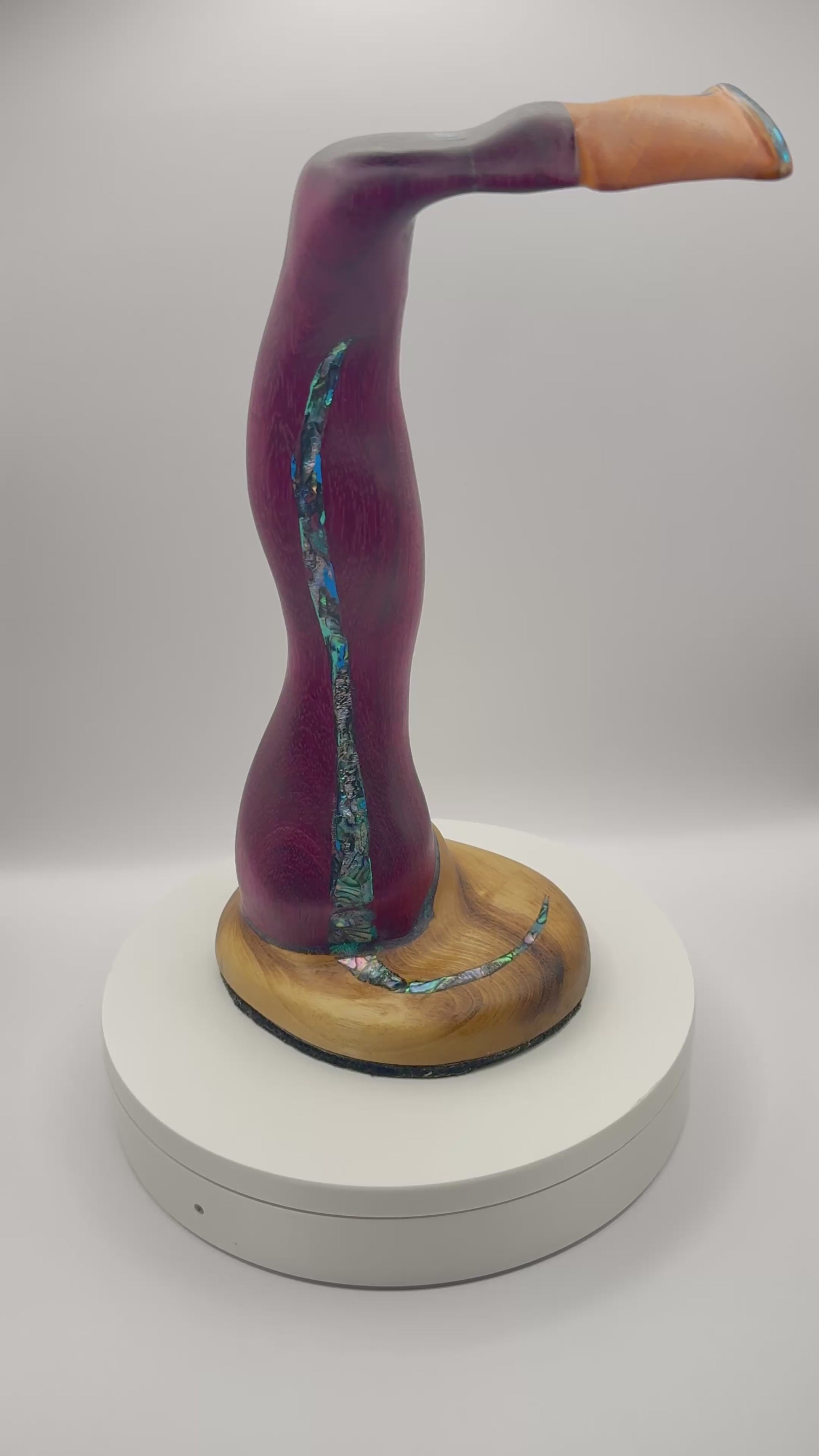 Purple Heart Headphone Stand - Handmade w/ Abalone Inlay